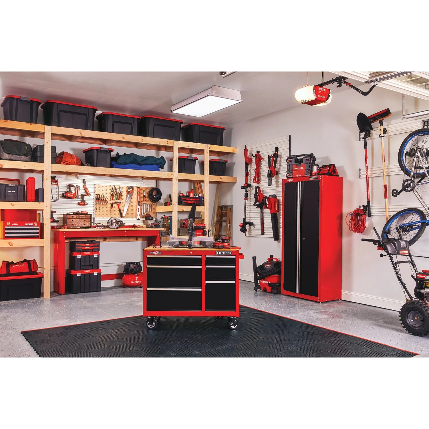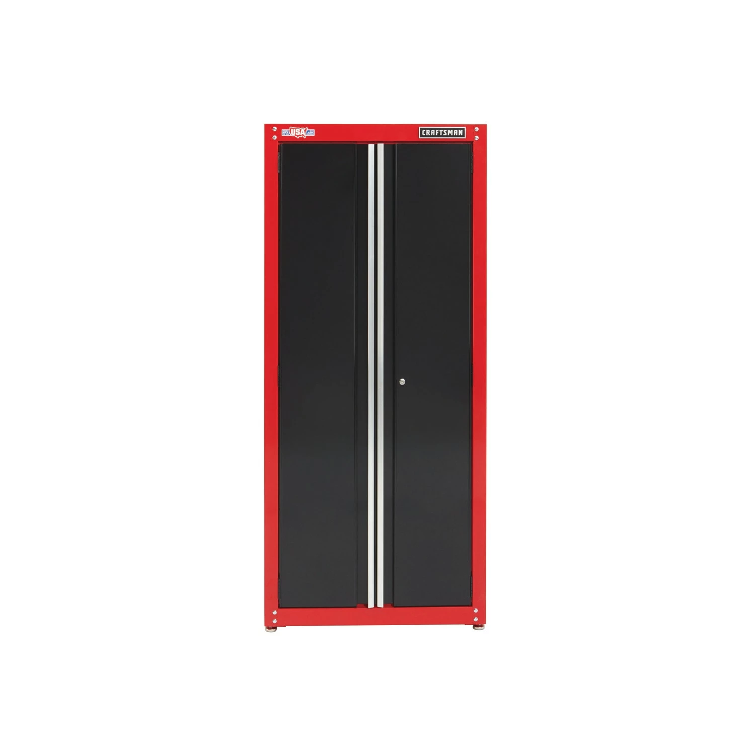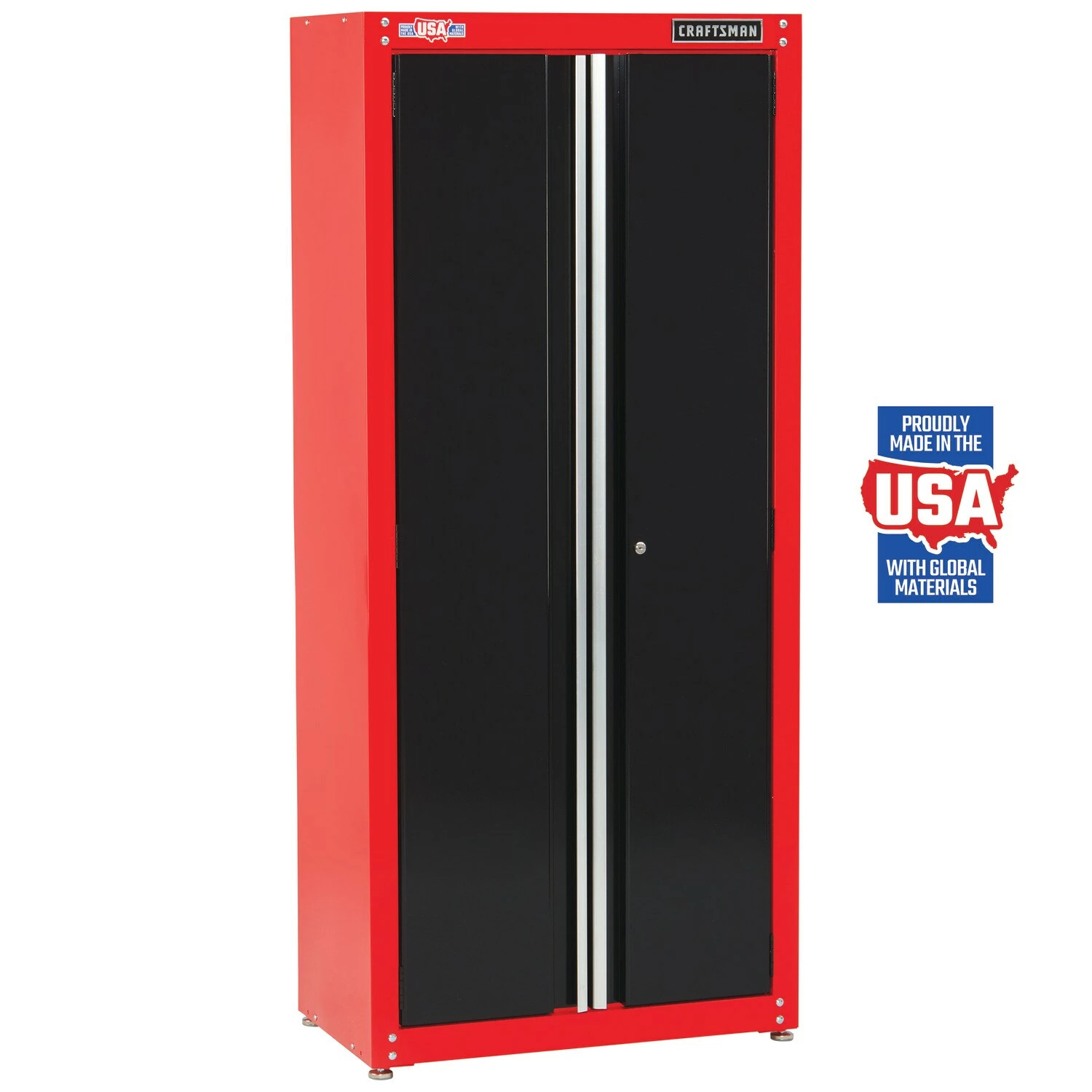 Proudly Made in the USA with Global Materials in Sedalia, Missouri. The 32-in Wide Freestanding Tall Garage Storage Cabinet is the best place to start when organizing your garage. Keep your tools off the workshop floor while being organized and ready for the next project to come. Includes (1) Storage Cabinet and (1) Set of keys. Backed by CRAFTSMAN 10-Year Limited Warranty.
