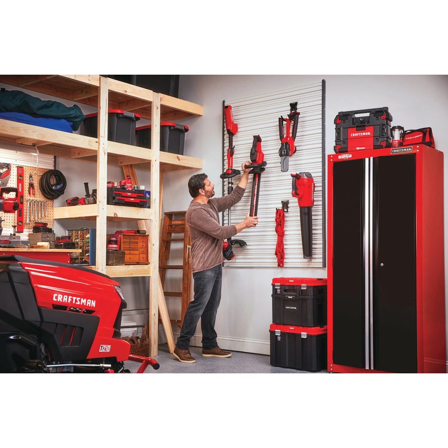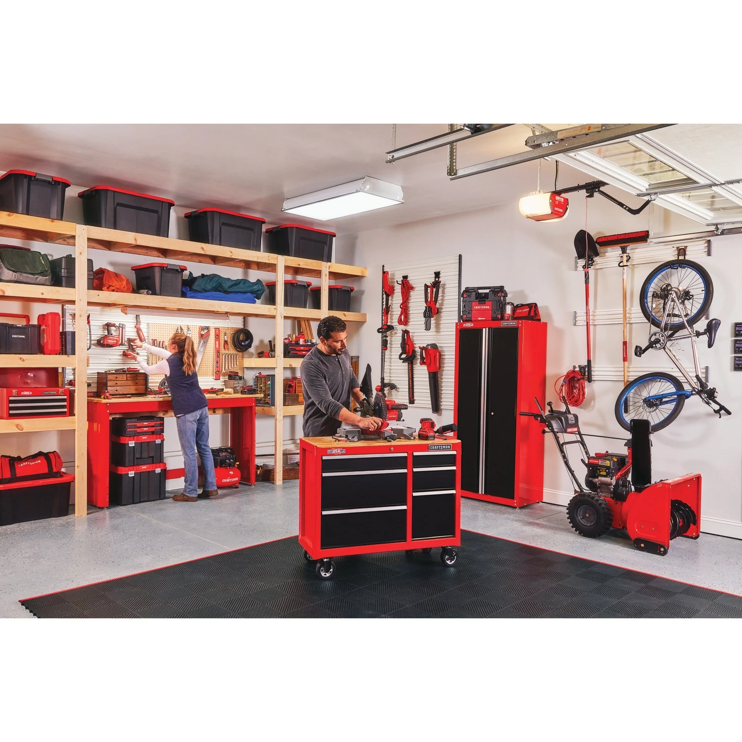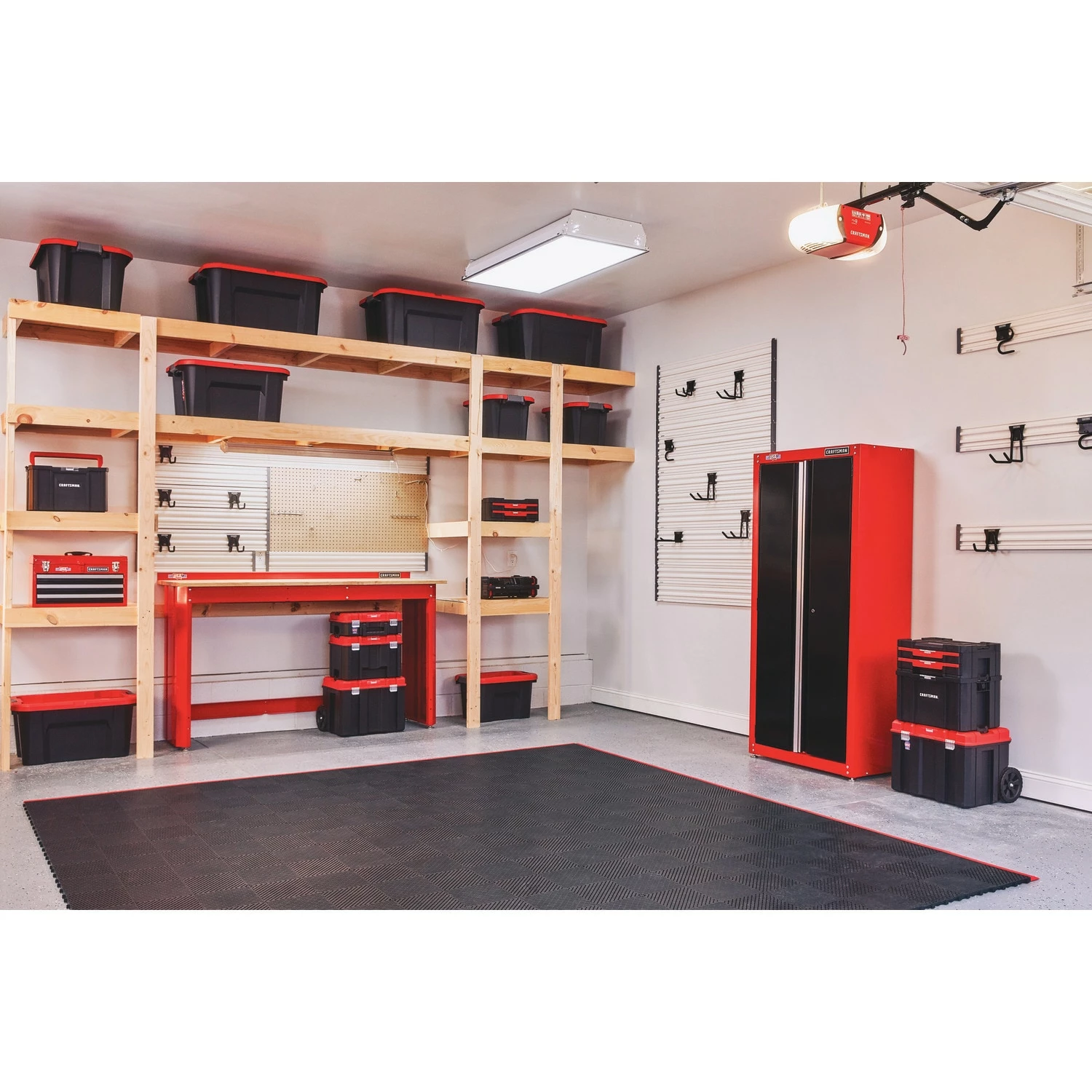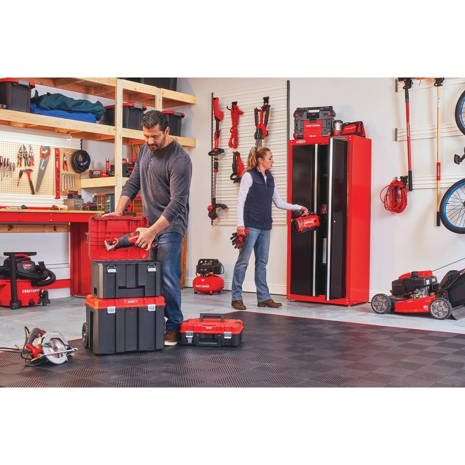 Proudly Made in the USA with Global Materials in Sedalia, Missouri. The 32-in Wide Freestanding Tall Garage Storage Cabinet is the best place to start when organizing your garage. Keep your tools off the workshop floor while being organized and ready for the next project to come. Includes (1) Storage Cabinet and (1) Set of keys. Backed by CRAFTSMAN 10-Year Limited Warranty.