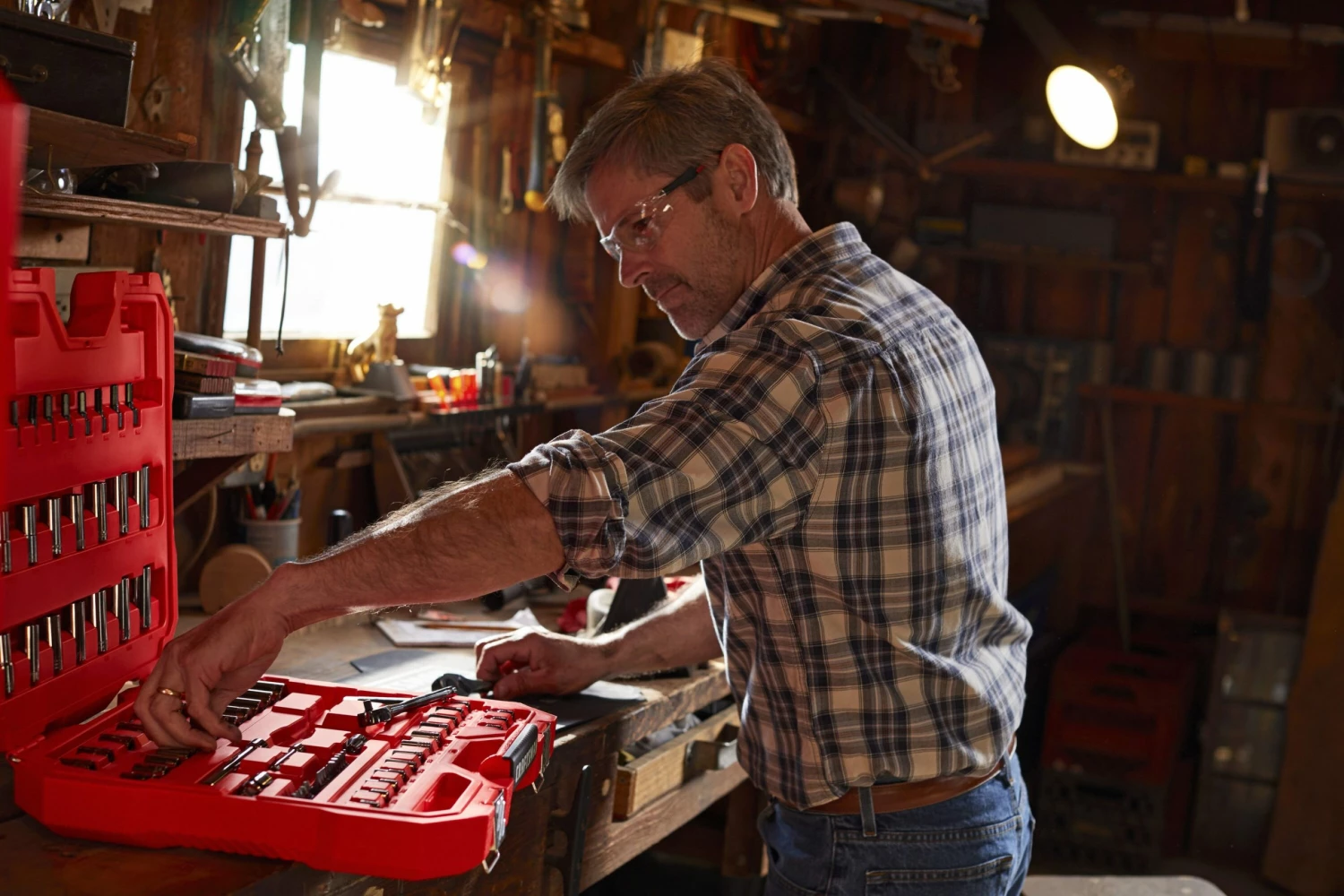 81-piece Gunmetal Chrome Mechanics Tool Set is made for the auto-enthusiast, semi-pro, or do-it-yourselfer. This set comes with the new 120-Tooth ratchet that provides maximum accessibility in tight spots. With its slim head and 3-degree arc swing, you can get into narrow spaces with ease and quickly tighten or loosen a fastener. This set also comes with two extension bars, a universal joint, a spark plug socket, a bit adapter, and a wide range of shallow and deep sockets for added utility. The gunmetal chrome finish provides durable rust resistance, easy cleaning, and a professional look. All of these components are packed in a compact mobile case perfect for storage in a toolbox, garage, a vehicle or proudly displayed on your workbench. The case has durable metal clips and metal removable hinges for splitting the case into two for storage or ready availability. The case also has exterior grooves for stacking with same size cases. Take on your next project with our Gunmetal Chrome 81-piece tool set.