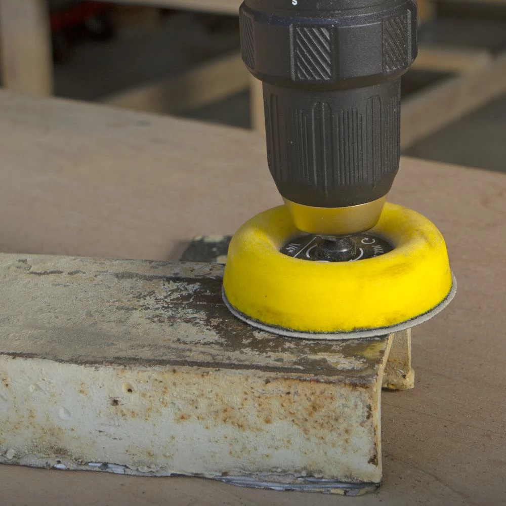 - The sanding pad is made from a rubber polymer with a steel backed plate which offers exceptional durability on flat and contoured surfaces