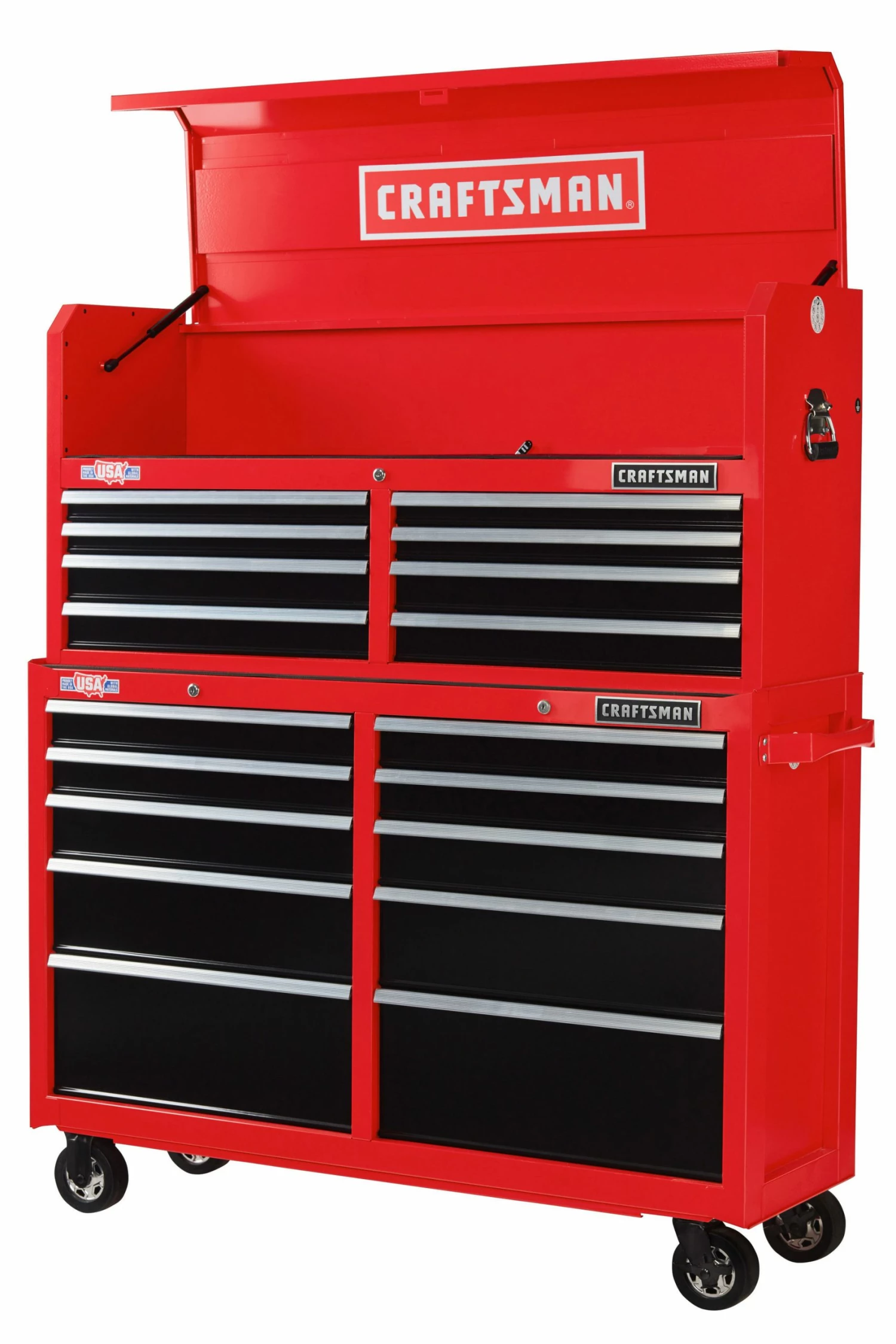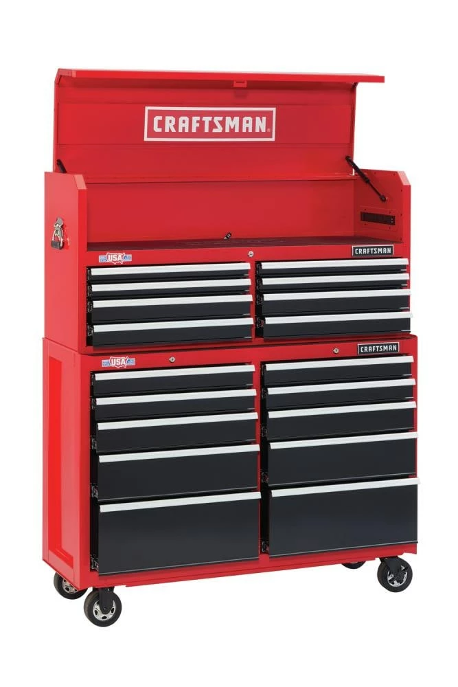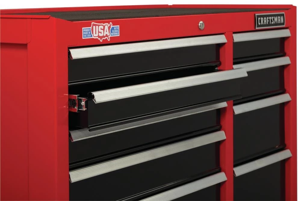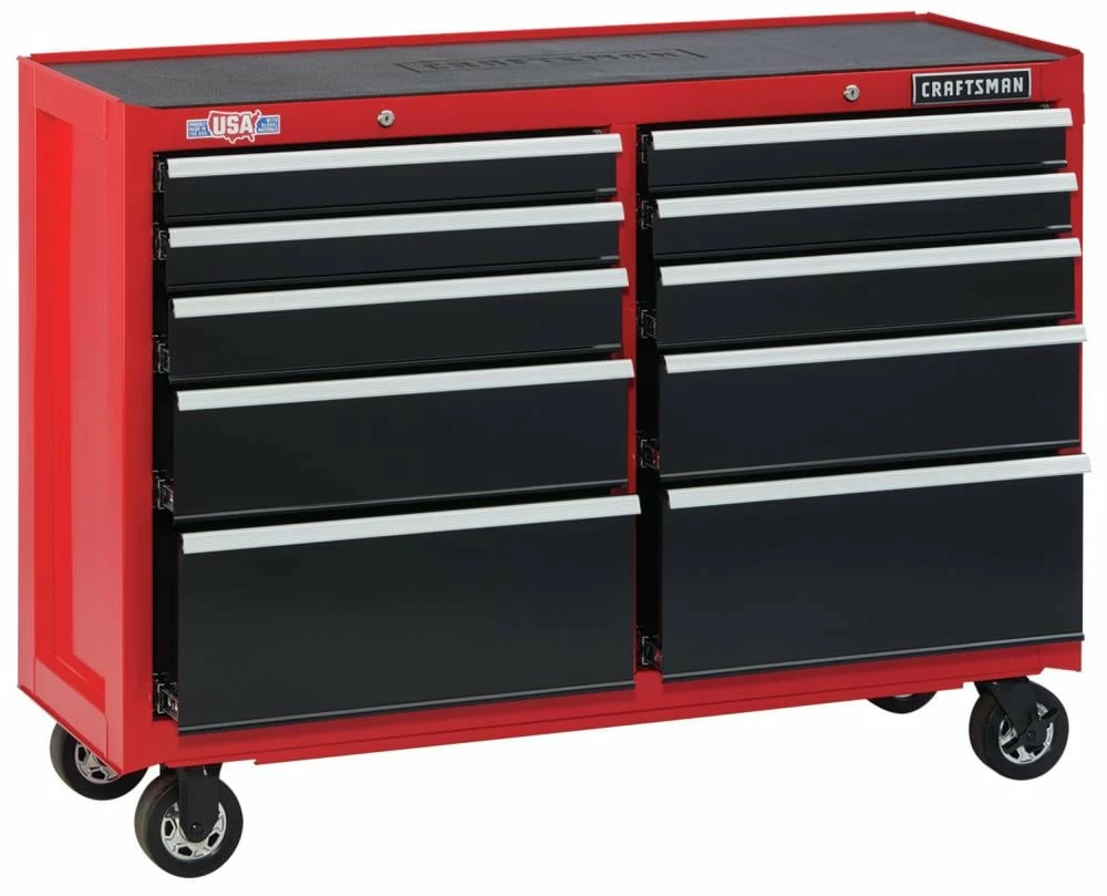 Proudly Made in the USA with Global Materials this 2000 Series 52-in Wide 10 Drawer Rolling Tool Cabinet can support 100-lbs and features heavy-duty soft close drawer slides that gently pull themselves shut without slamming. Combine this metal tool cabinet with the matching tool chest, and you’ll have the ultimate tool organizer.