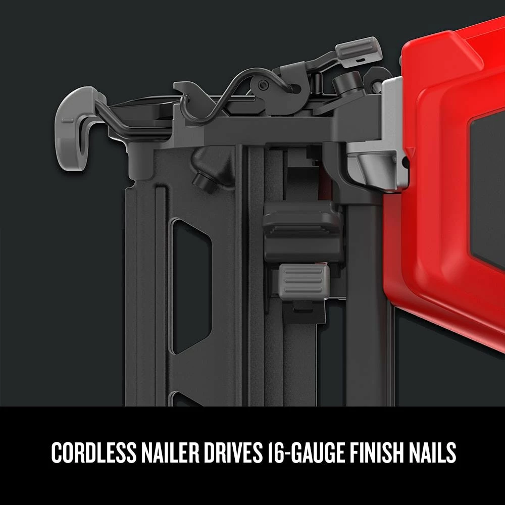 - Includes: (1) CMCN616 16 GA straight finish nailer, (1) V20 20V MAX lithium ion battery, (1) V20 20V MAX lithium ion charger, (100) 2-in finish nails, (100) 2-1/2-in finish nails