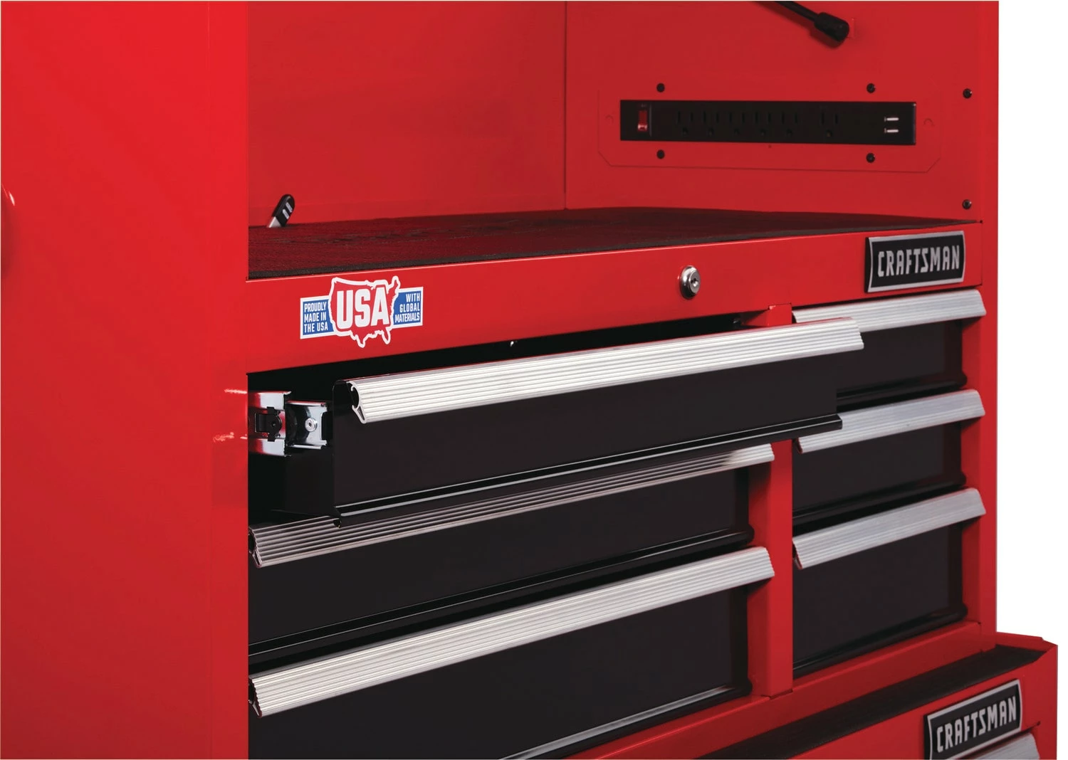 Proudly Made in the USA with Global Materials in Sedalia, Missouri. The 2000 series 51.5-in Wide 8 Drawer Tool Chest provides the user with the convenience of having an integrated power strip with USB ports for charging batteries, devices and more.