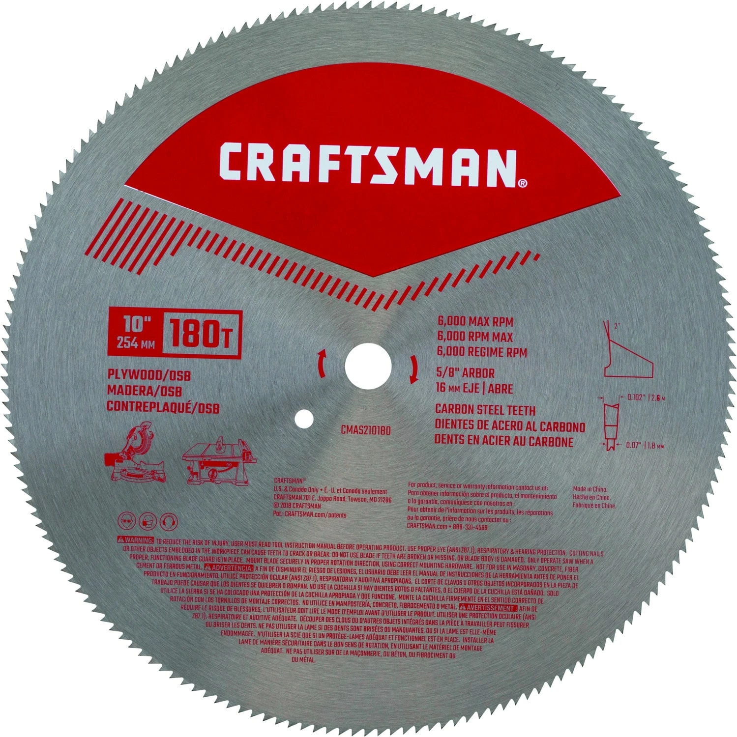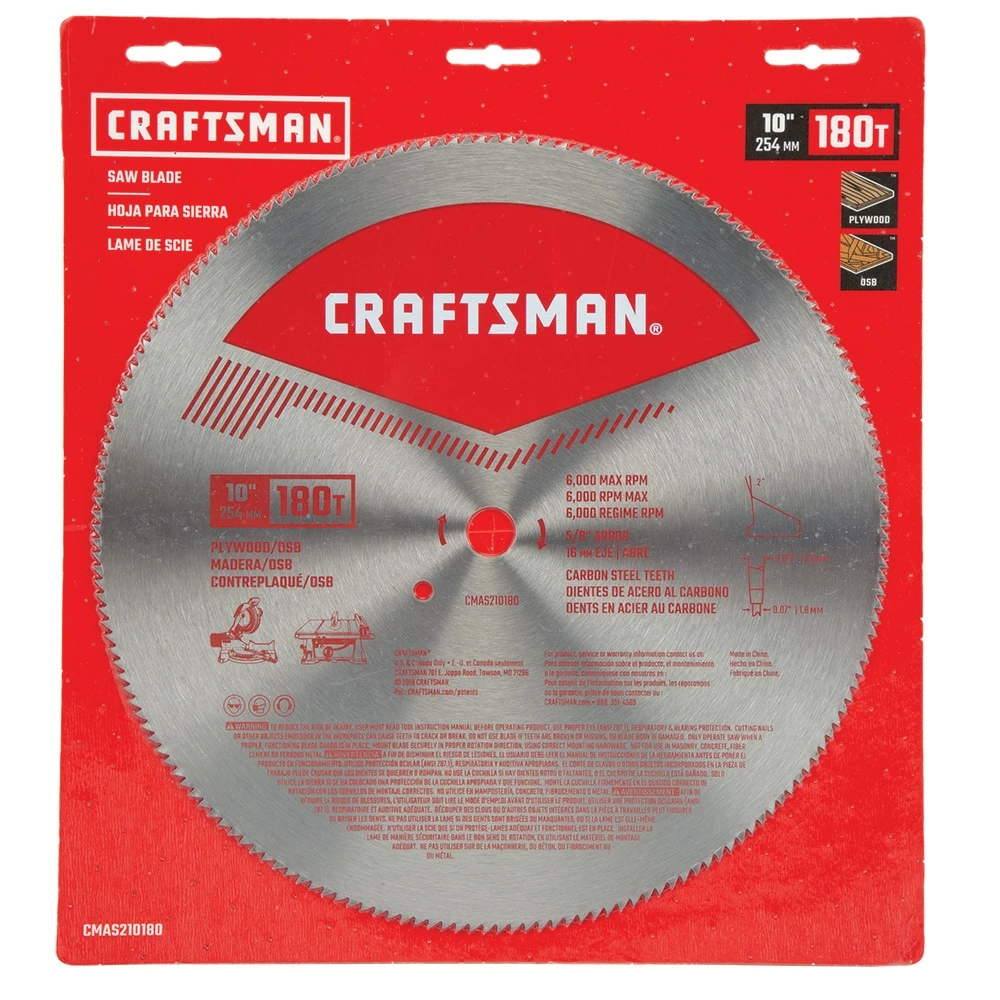 Designed for cutting a variety of materials, including plywood, vinyl siding, and plastic, the CRAFTSMAN 10-in 180-tooth high-speed steel miter/table saw blade set is a must-have for your workshop. Made from heavy-gauge, high-carbon steel, this 10-in table saw blade has a high breaking strength and offers fast cutting speeds. The teeth of the blade are precision-ground to deliver smooth and effortless cutting through any material. The full-hardened plate also contributes to keeping the cuts precise. The 180-tooth count of this blade also ensures that there’s no chipping on the surface of the materials you’re working on, so you can achieve a flawless finish with every cut. Get all your cutting projects done fast with the CRAFTSMAN 10-in high-speed steel miter saw blade. Shop yours from Lowes.com.