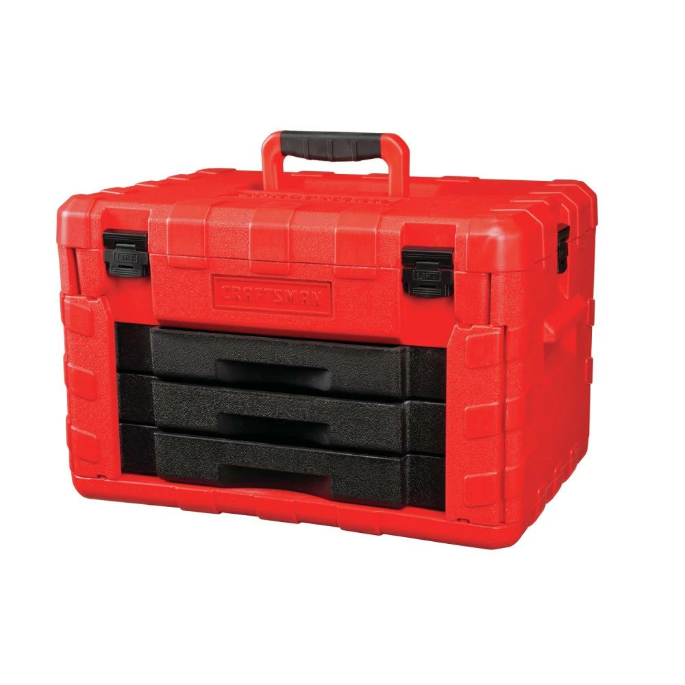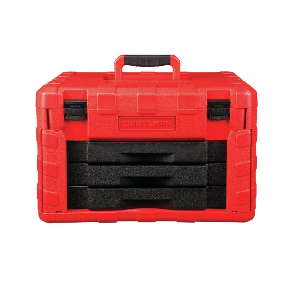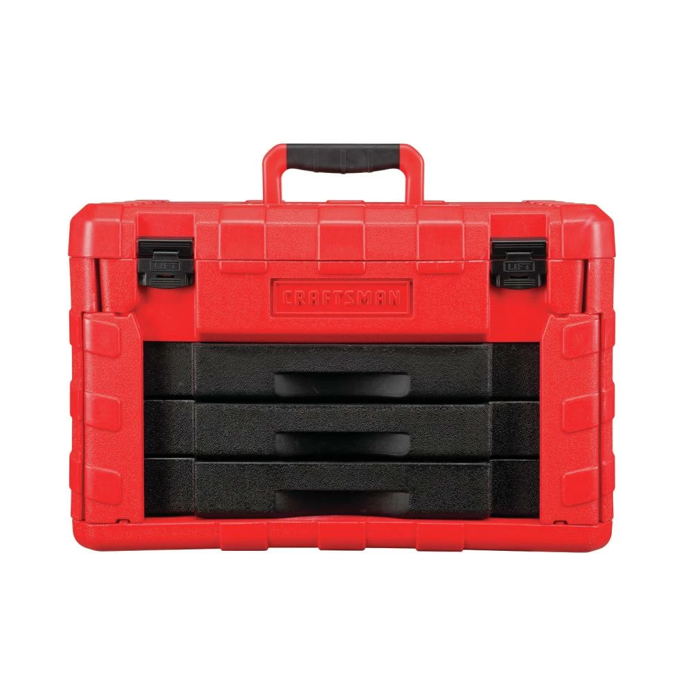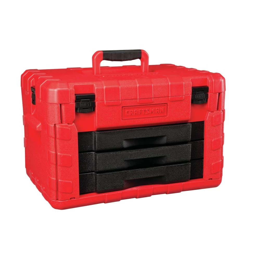 Nothing beats having the right tools for the job and that’s exactly what the CRAFTSMAN® 232-piece 3-Drawer Mechanics Tool Box provides. This Mechanics Tool Box comes equipped with 72-Tooth ratchets, an extensive assortment of drive tools, and a rugged 3-drawer blow mold case. These durable cases come with a carrying handle and removable drawers which are organized by drive size (1/4-in, 3/8-in and 1/2-in) so transporting only the drawers around the job is possible. These sets are perfect for automotive repair, general construction, and DIY repairs.
