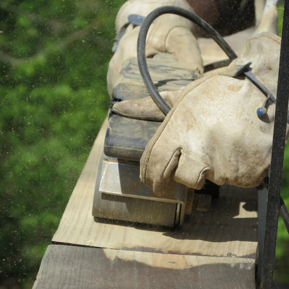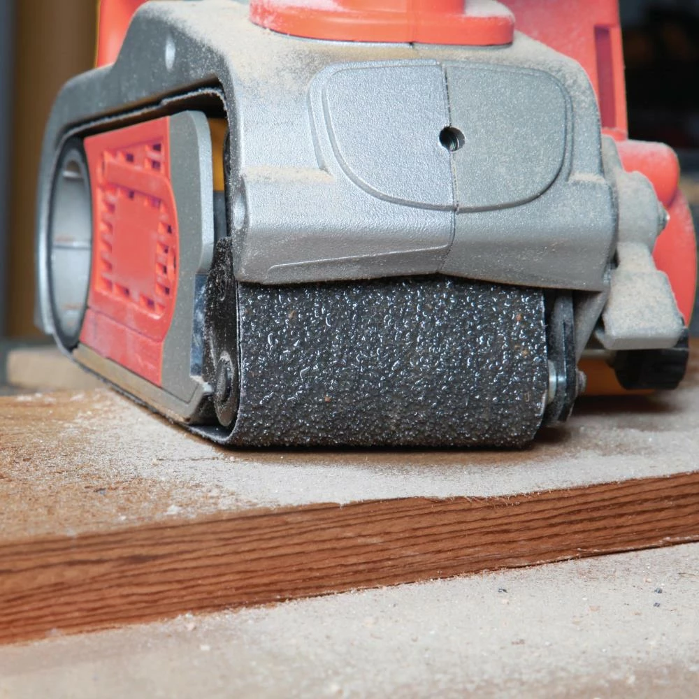 - Medium grit sanding belts are best for wood leveling and moderate stock removal of surface imperfections, light paint, varnish, or rust