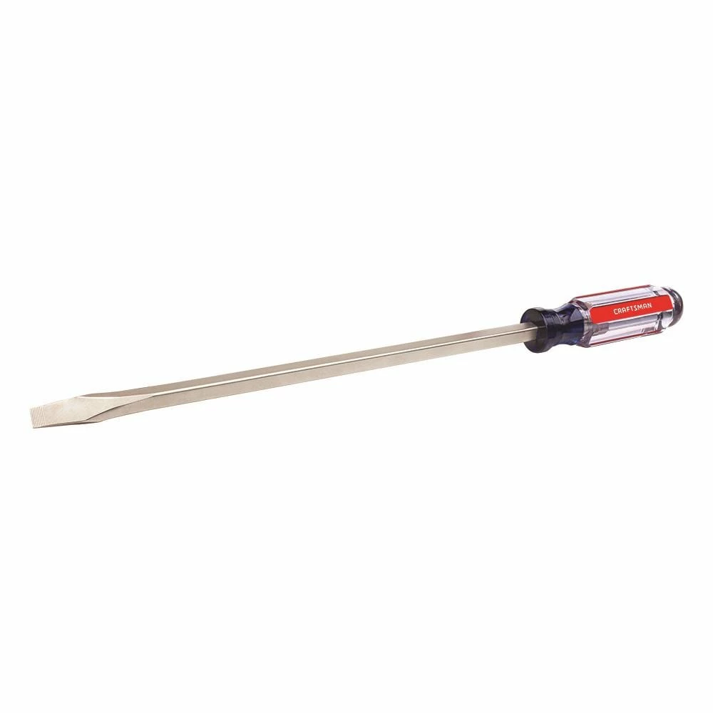 3/8-in x 12-in Slotted Acetate Screwdriver with acetate handles feature heat-treated, alloy steel blades for increased durability. A comfort optimized handle is ideal for high and low torque applications. Blades and shafts are coated with a satin-nickel finish to resist corrosion.