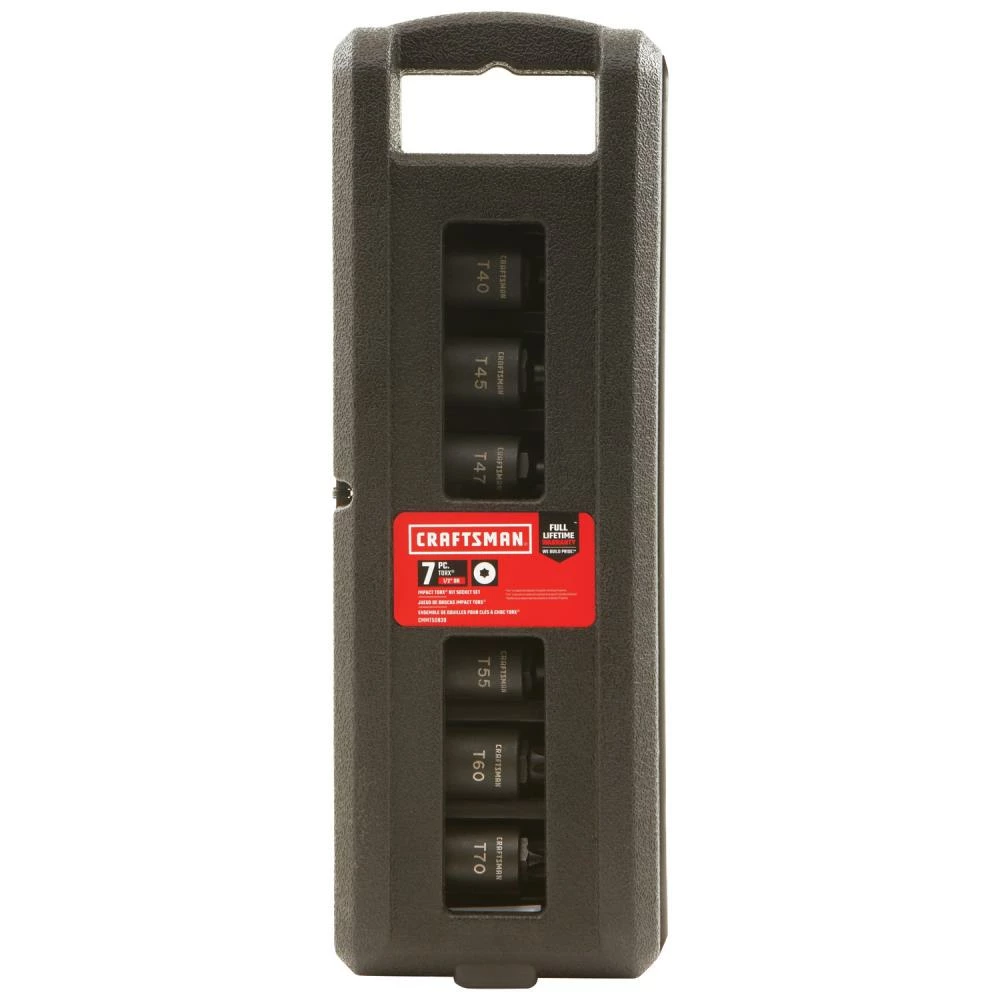 - Includes (7) 1/2-in Drive Torx Impact Bit Sockets (T40, T45, T47, T50, T55, T60, T70)