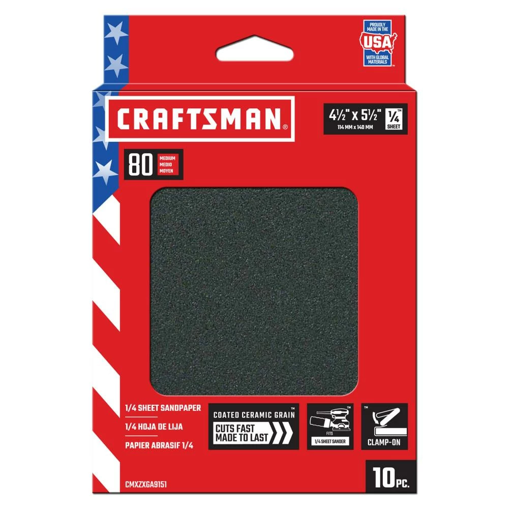 Promo ⌛ CRAFTSMAN Power Tool Sandpaper Ceramic 1/4 Sheet 80 Grit 10pk 10-Piece Ceramic Alumina 80-Grit Sheet Sandpaper ⭐