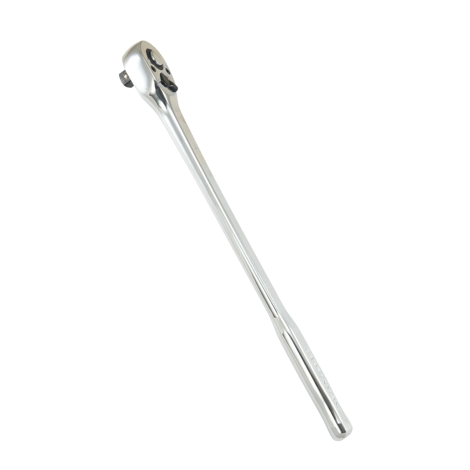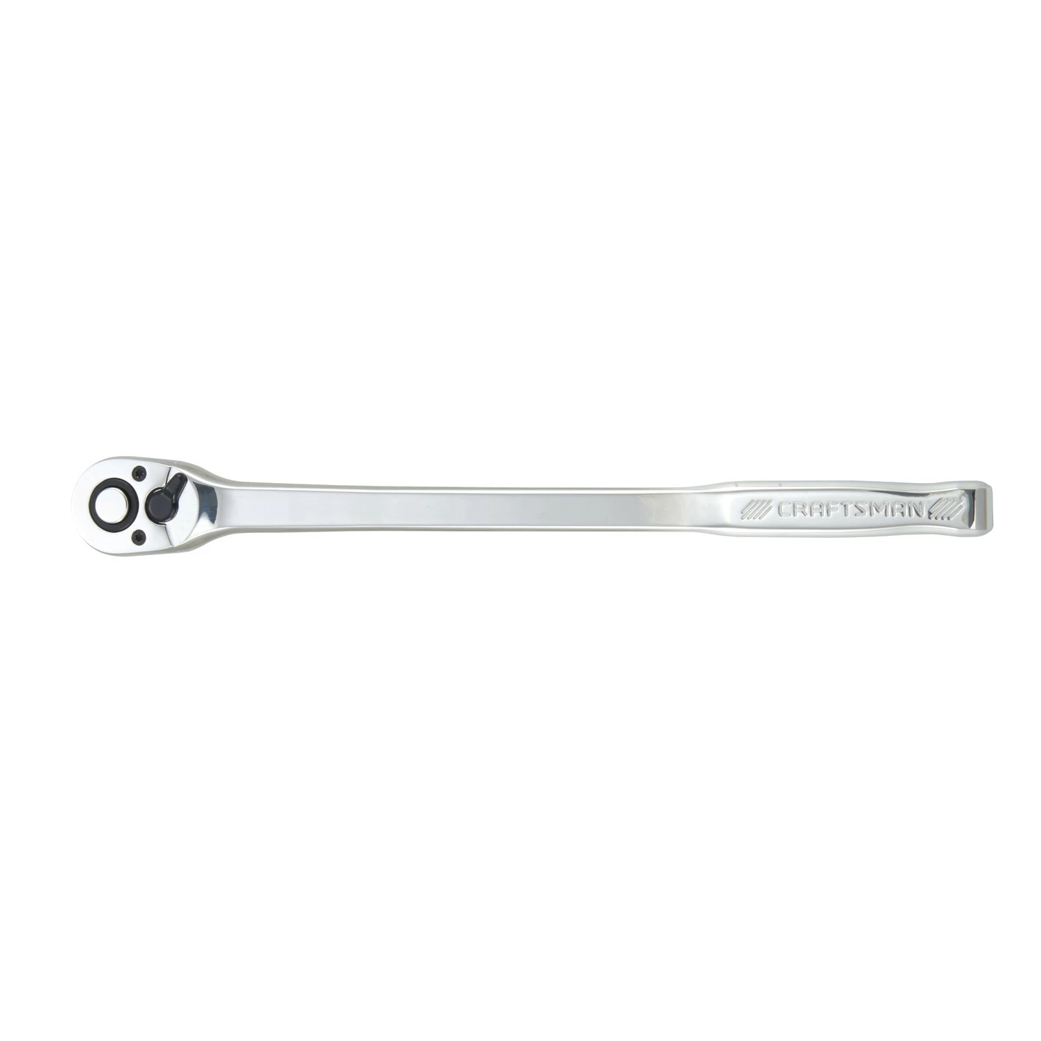 CRAFTSMAN® 1/2-in Drive 72 Tooth Long Handle Ratchet is durably constructed for speed, comfort, and balance for more overall productivity. A full polish finish with a forged ergonomic handle allows for comfortable use when putting your weight behind a bolt. This ratchet is 15 inches in length and therefore is an ideal ratchet for high torque applications.