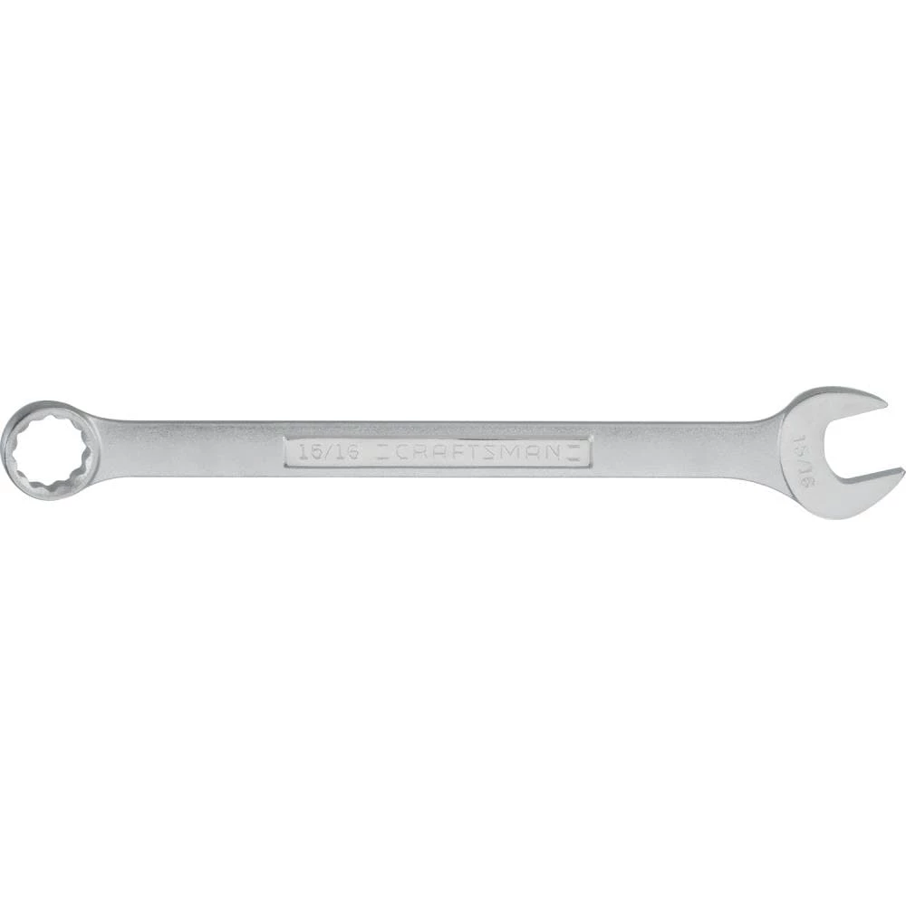 15/16-in Standard SAE Combination Wrench has a corrosion resistant chrome finish providing extra wear and tear coverage while adding hardness and durability allowing your wrench to last longer. CRAFTSMAN® wrenches meet or exceed ASME specifications.